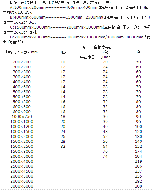 鑄鐵平臺(鑄鐵平板)規(guī)格:(特殊規(guī)格可以按用戶要求設(shè)計生產(chǎn))